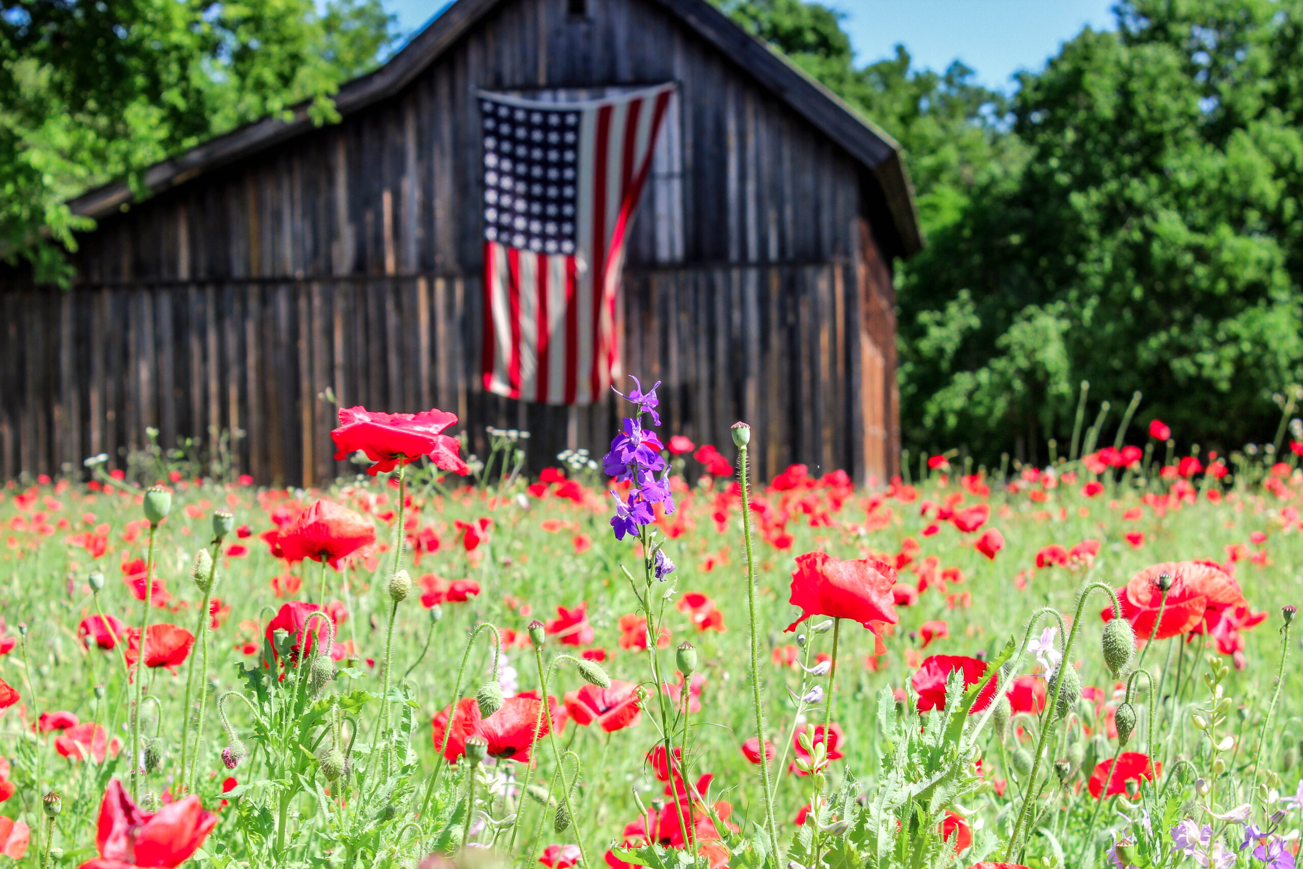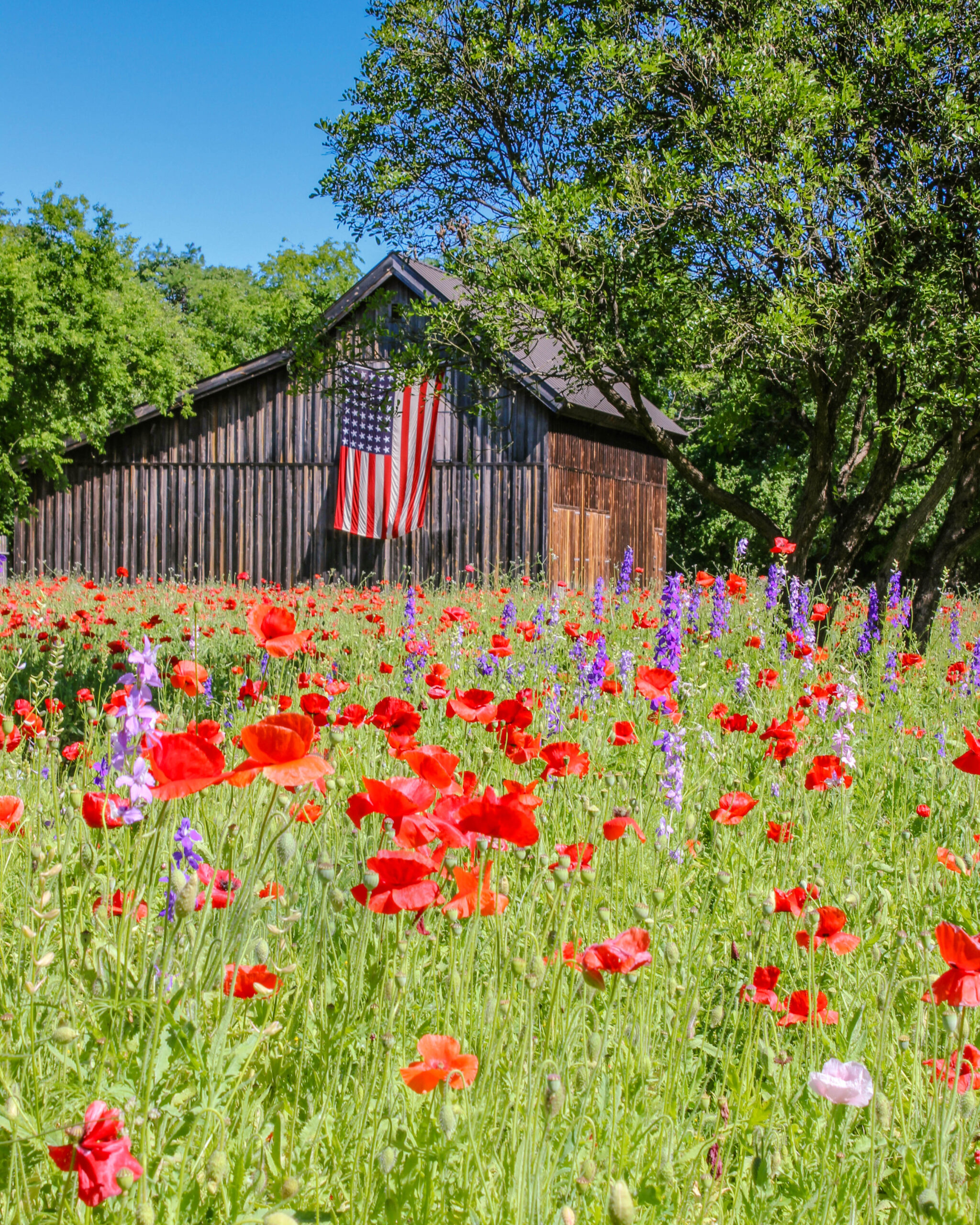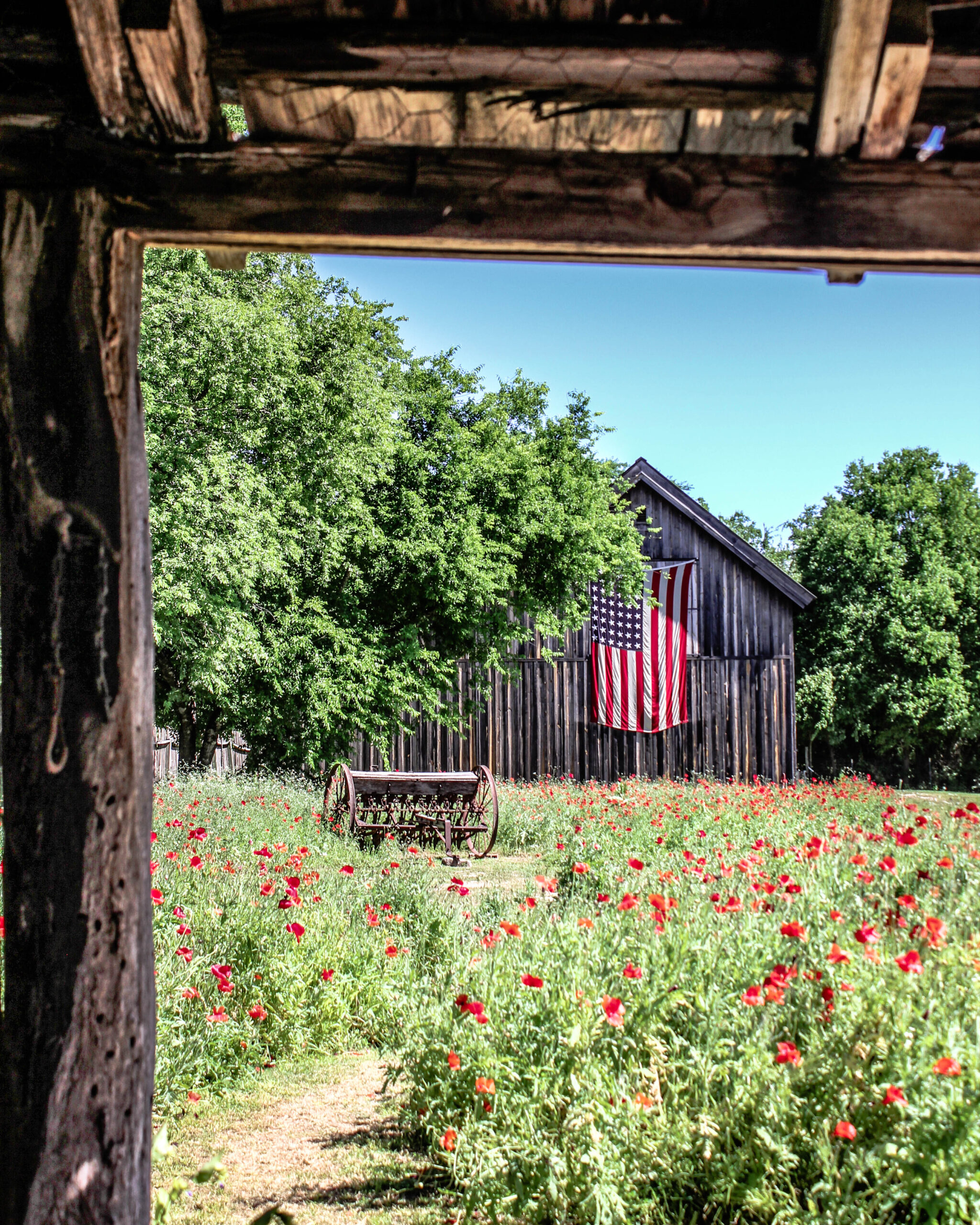 Many of the locals go there for family photos with their kids, and others make appointments for shooting: brides, engagement, graduation, prom photos and more! The homeowners ask for nothing in return except donations to the local VFW and American Legion chapters. The homeowners even collect the seeds, and in addition to re-seeding their own property, to distribute to others in Castroville in their attempt to paint the town red. This year they were doing a World War II theme, so they even found an old 48 Star American Flag to fly tacked up to the old barn.