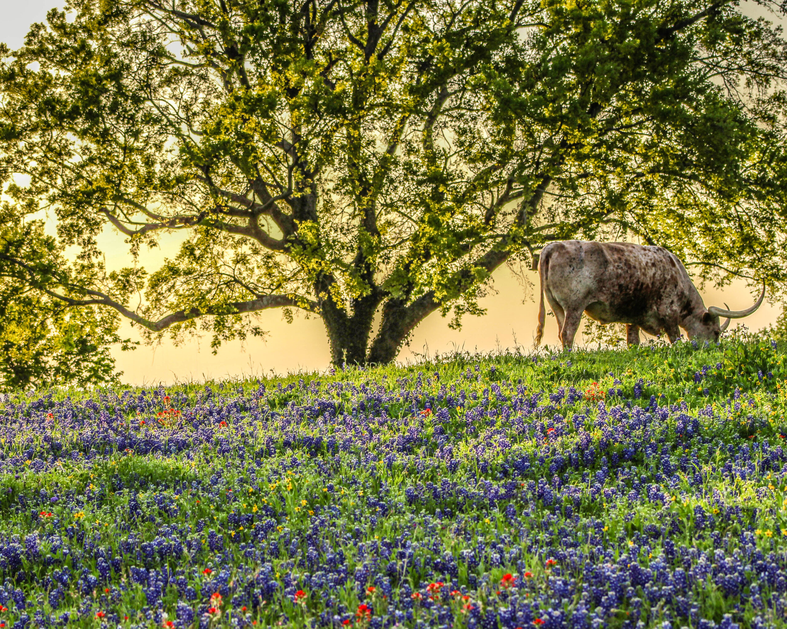 One of the things I enjoy about the peak of wildflower season from March – June here in Texas, is that often times the best wildflower fields can be found in the countryside along with the livestock from which farmers and ranchers derive their livelihood. Ennis, Texas is known for their bluebonnets, and the area garden club works on seeding their surrounding countryside, providing maps for tourists which even include other photo ops of interest, such as that all too stereotypical Texas Longhorn and even horses. One of the owners leaves out a bucket of grain for visitors, so you can tempt the horses to the fence line for photos. Whether it’s Ennis, or other areas of the Texas Hill Country, you never quite know what you might find unless you go exploring!