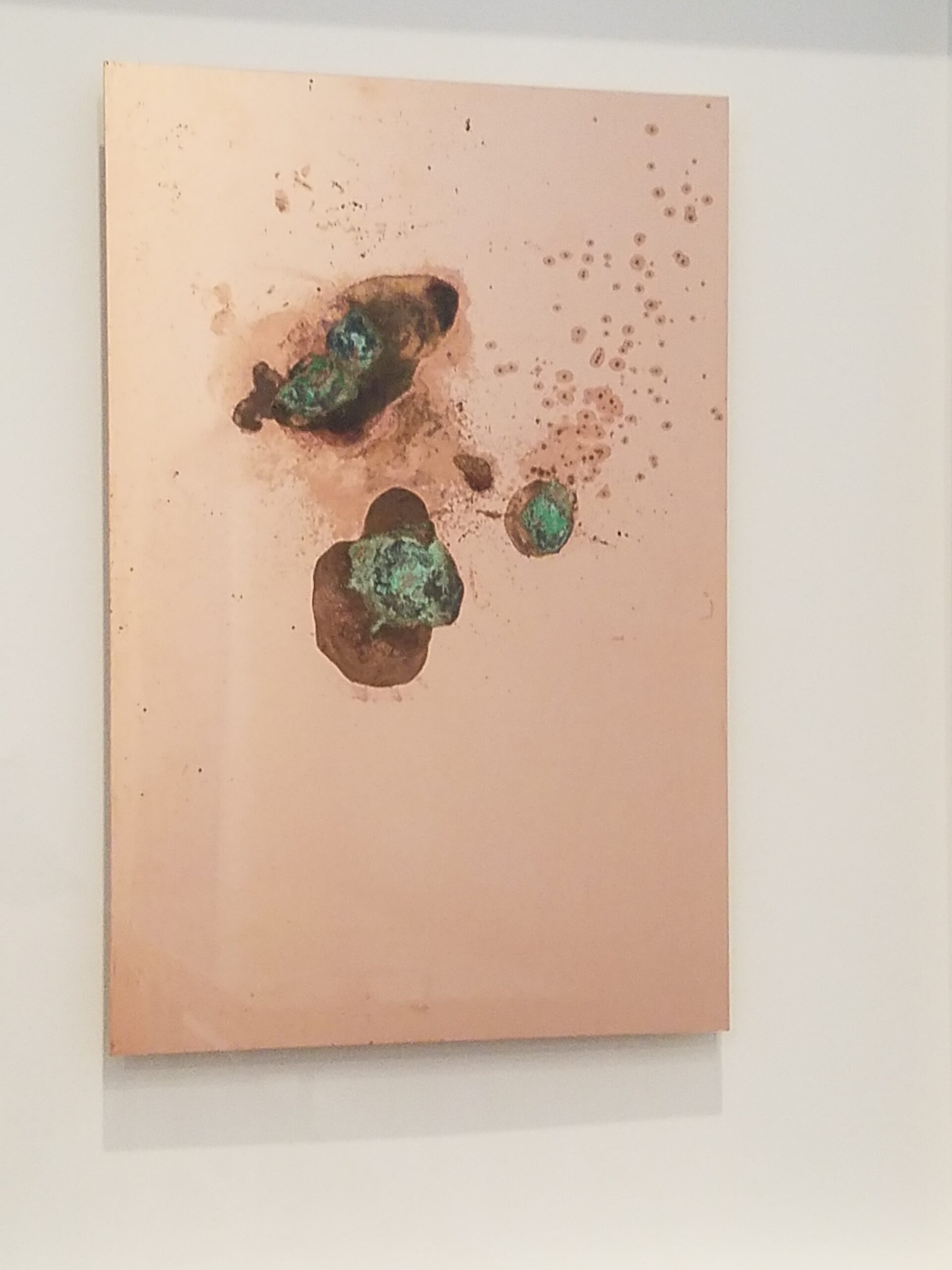 I swung by the famous Ballroom Marfa for their installation at the time, and was rather taken by this artists use of electrical current through tobacco to the cooper sheet metal. I think in this case, it brings back fond memories of me working with copper during my metal & jewelry days. There was also an interesting exhibit that tackled political issues of identity as found in language and how various countries were using accents to authentic paperwork and grant or deny admittance to their country for foreigners. I also tried to visit the artisan retail fronts of both Freda,and the Wrong Store but they were also closed.