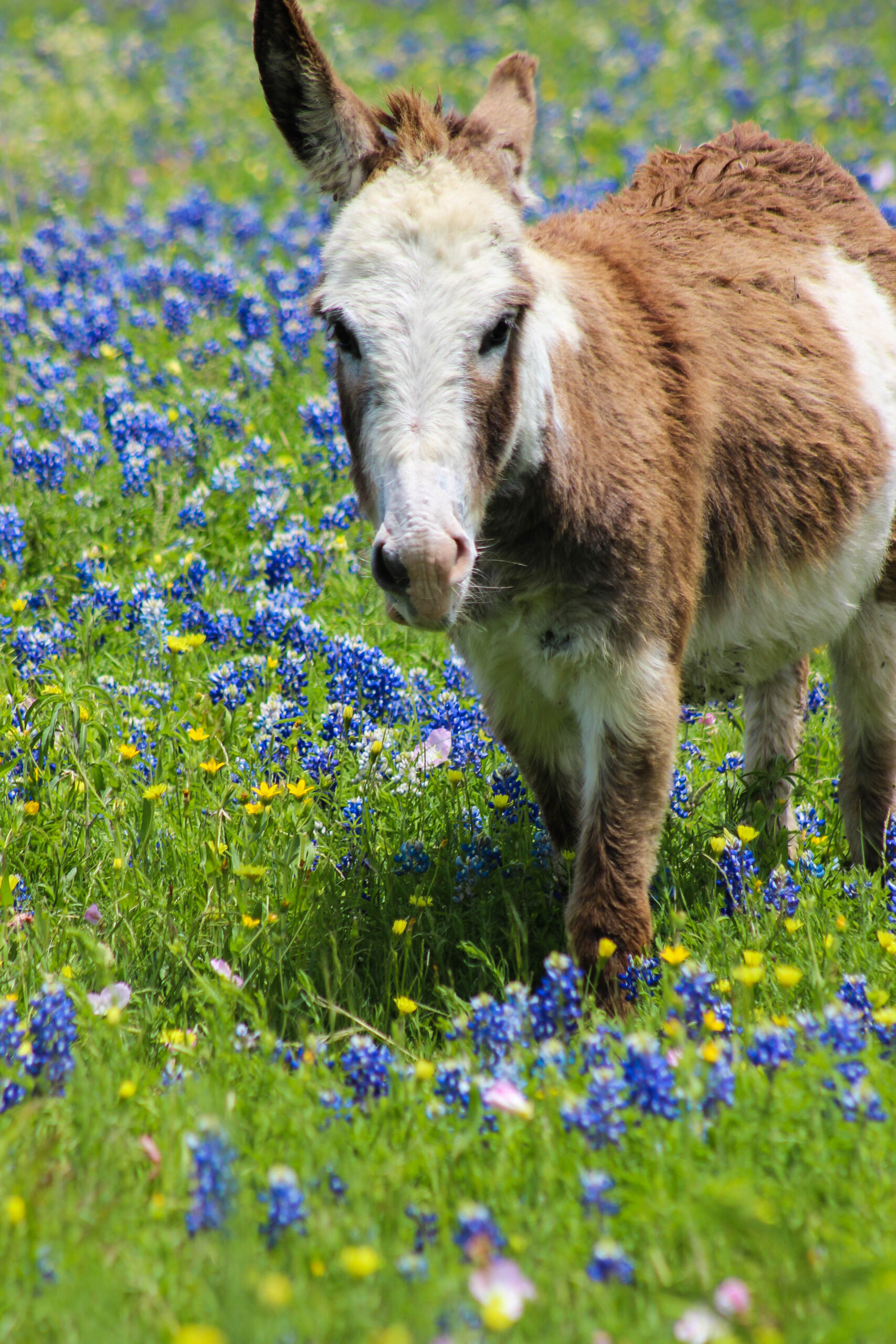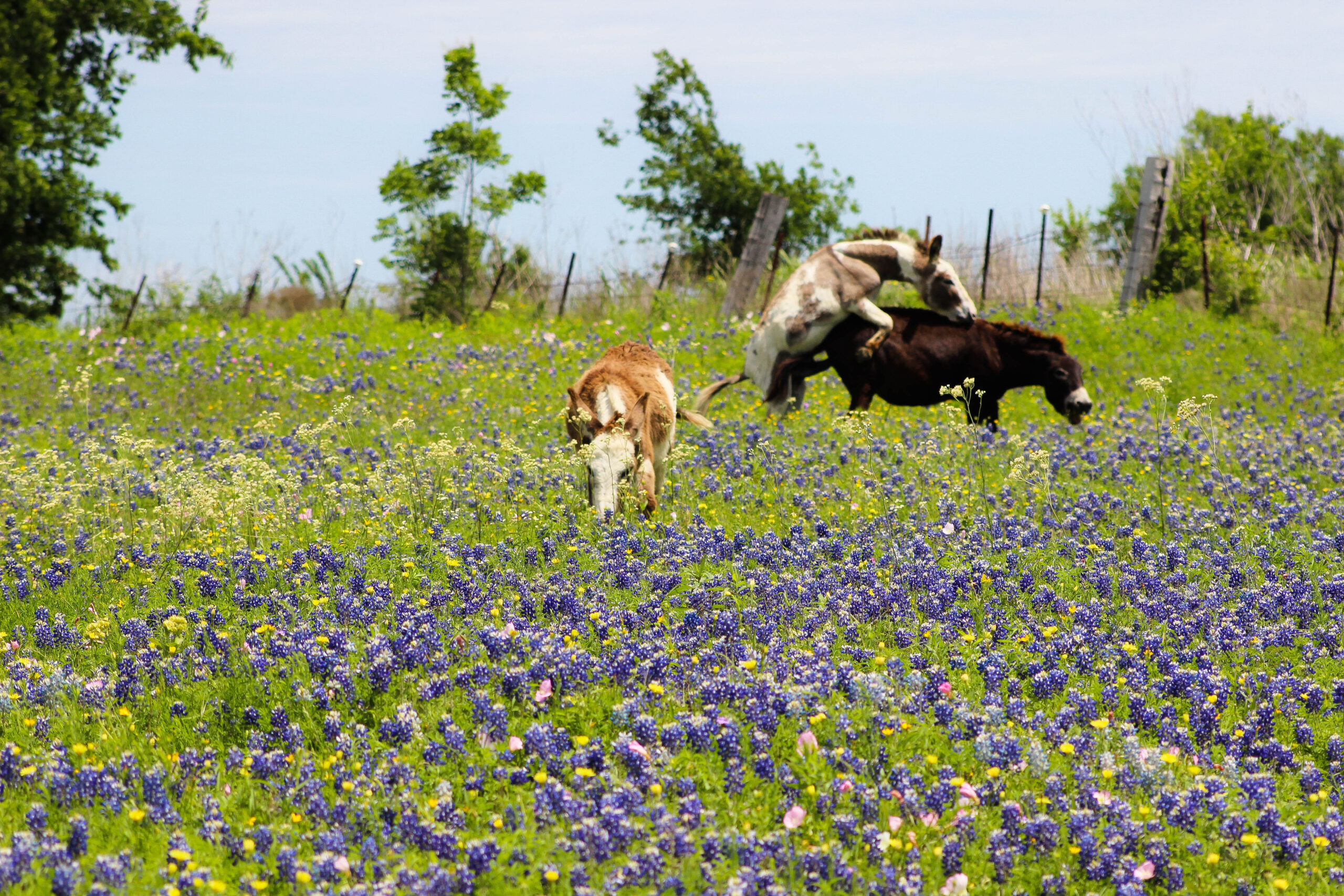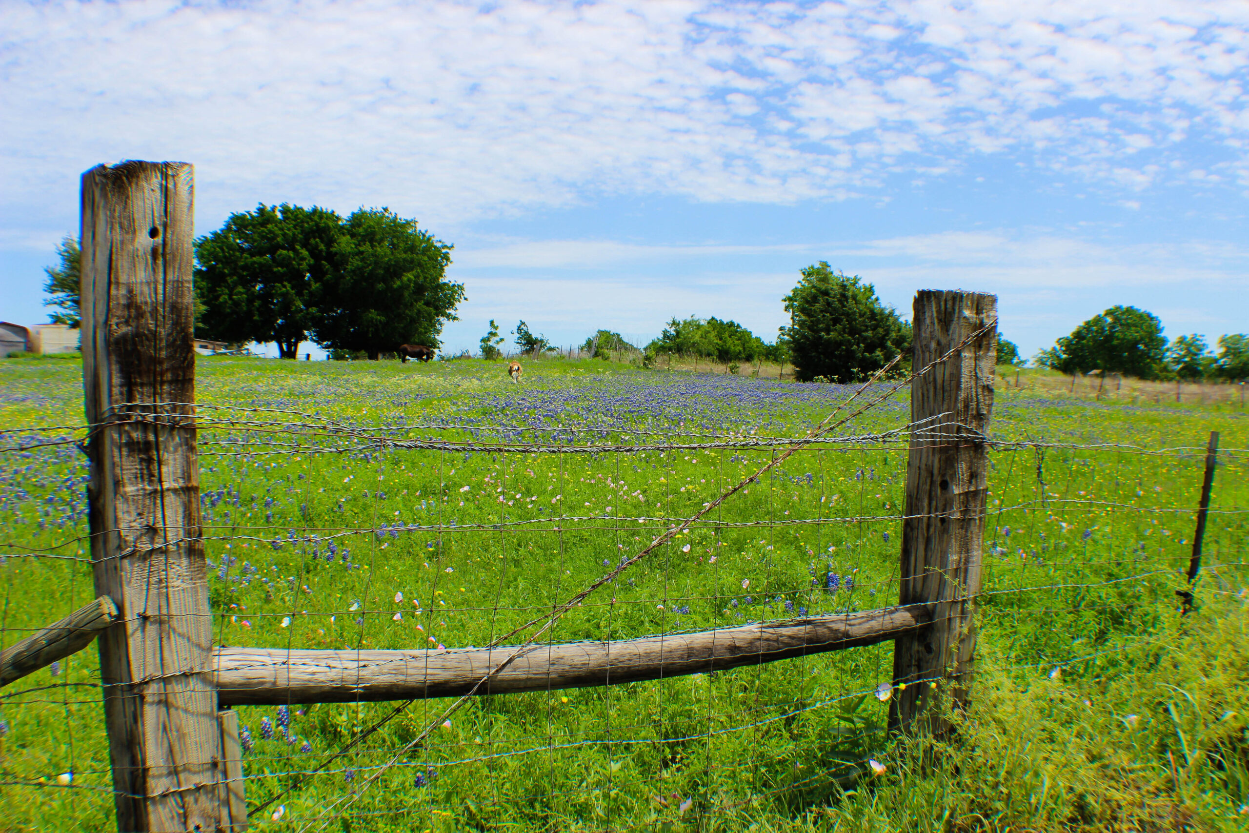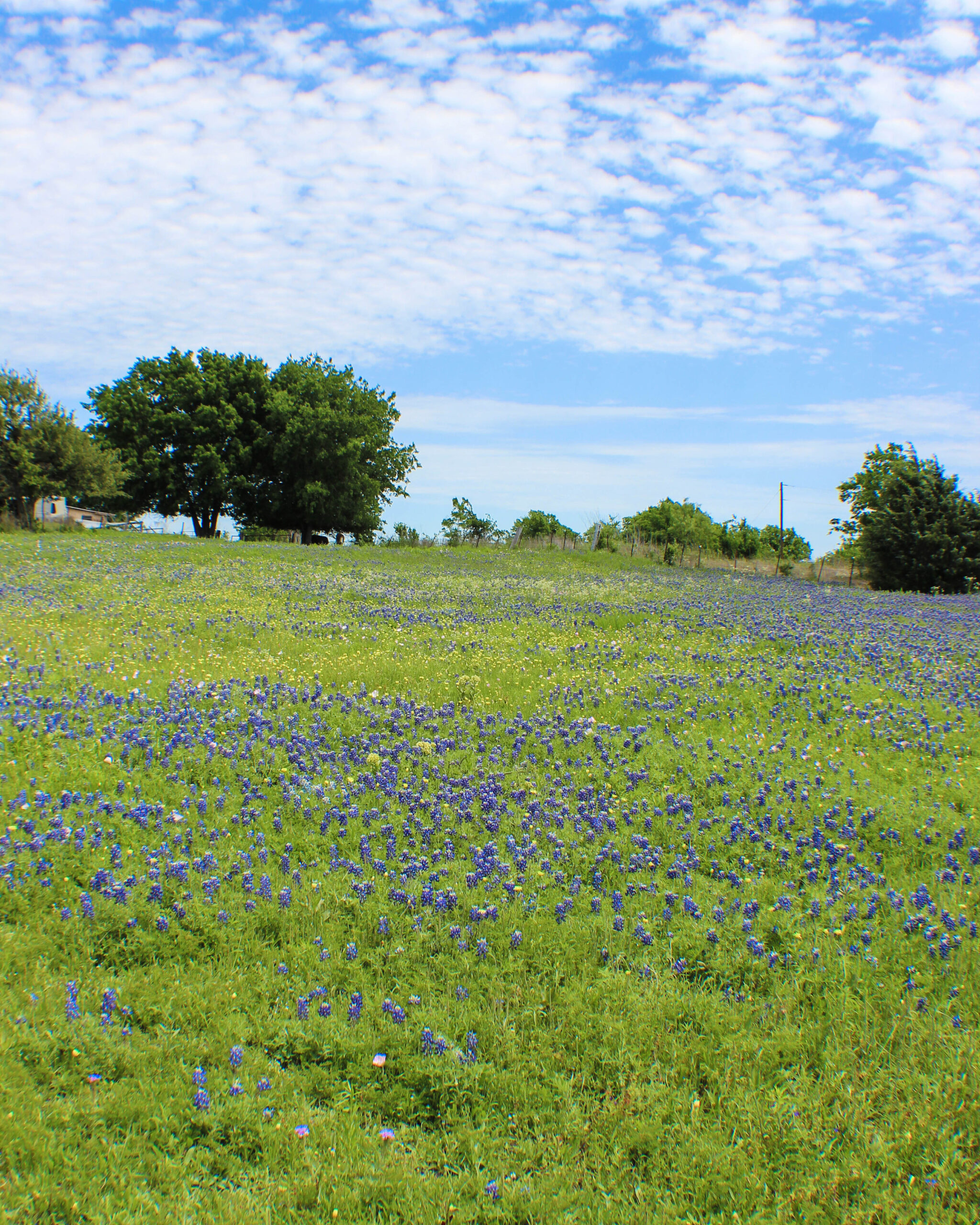 One of the spots I did have luck, was a small fenced in private pasture on Mach Road, the Bluebonnets there were thick, lush, and tall. If not at peak, they’re just a bit past peak and they were surrounded with some sprinklings of pink, yellow, and even a touch of white from some other wildflowers which intensified the blue of the bluebonnets themselves.