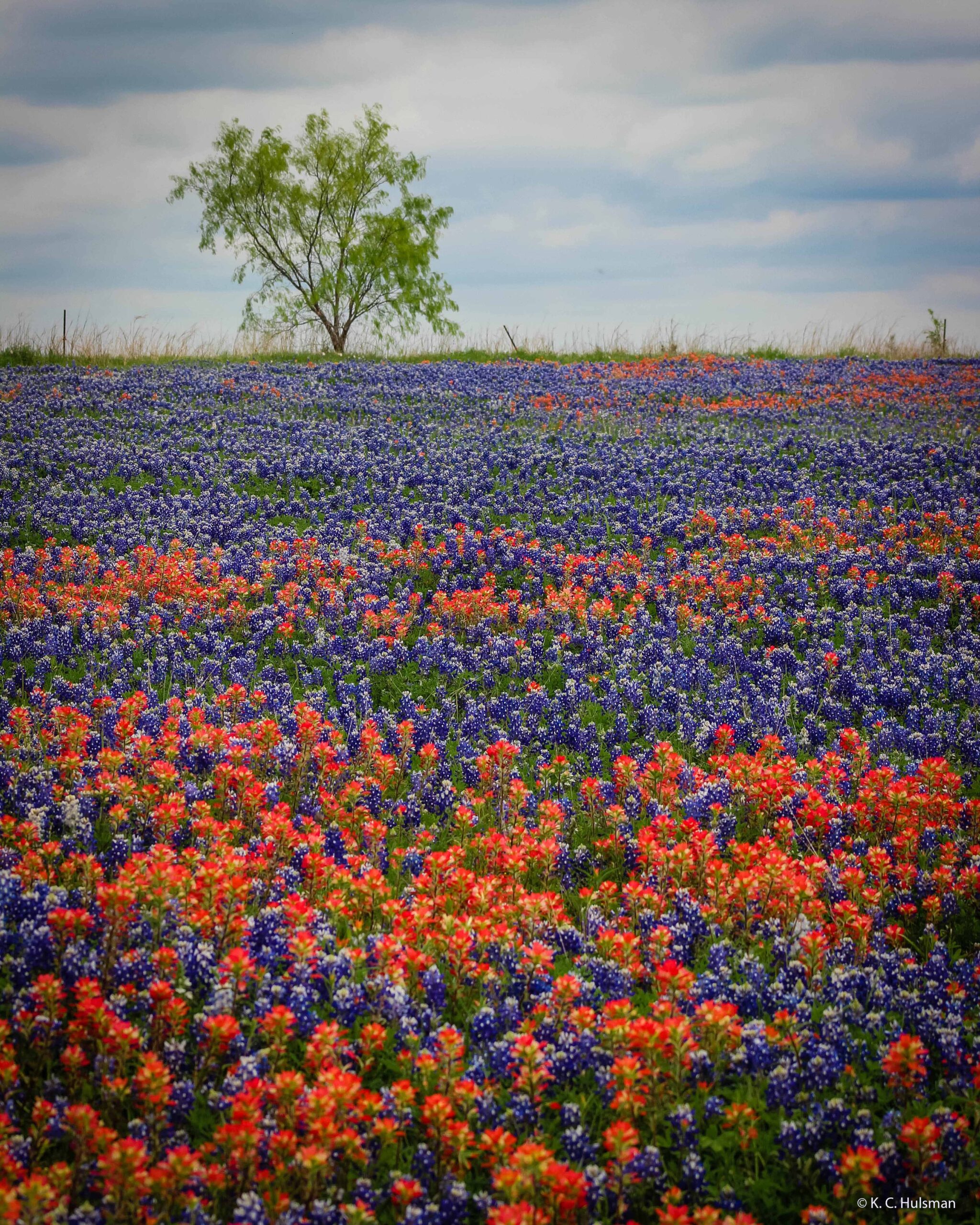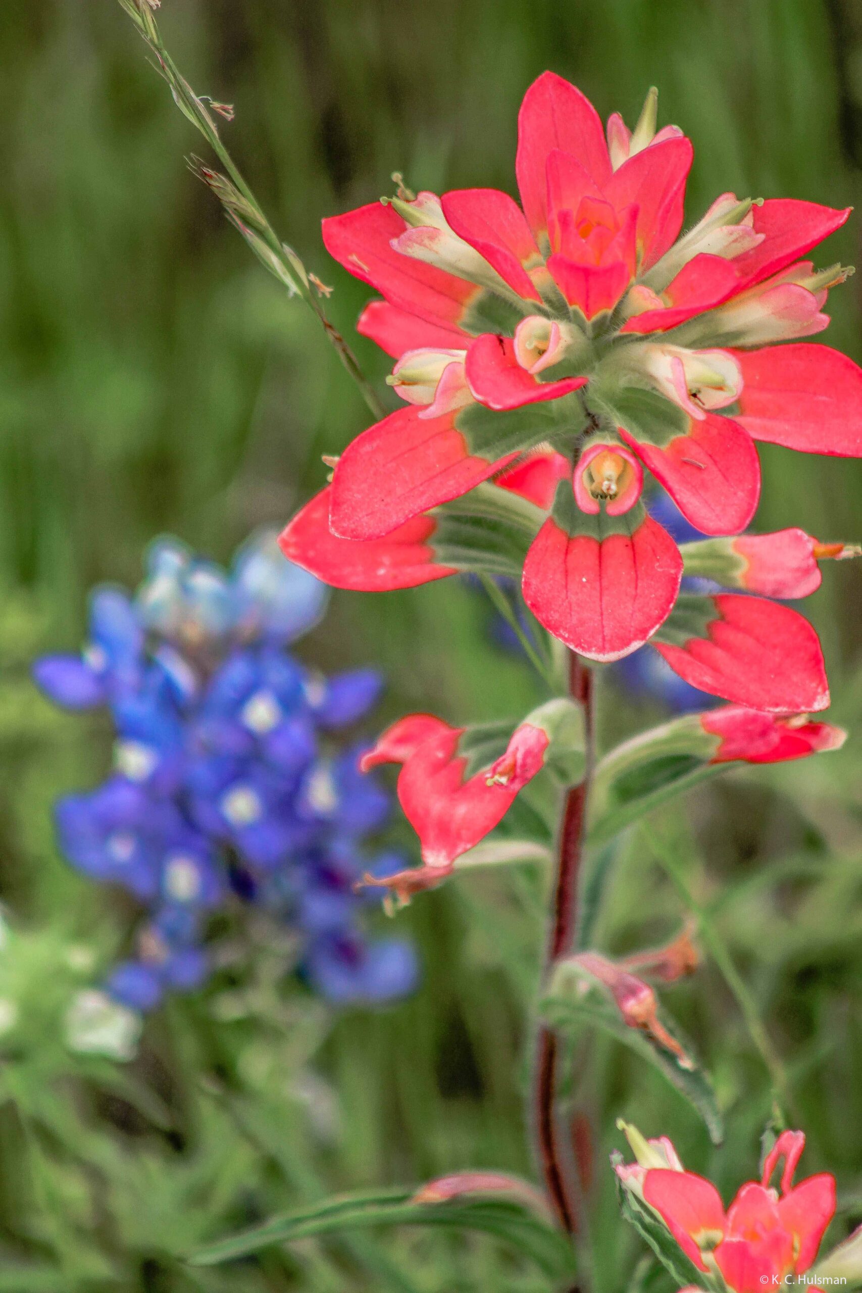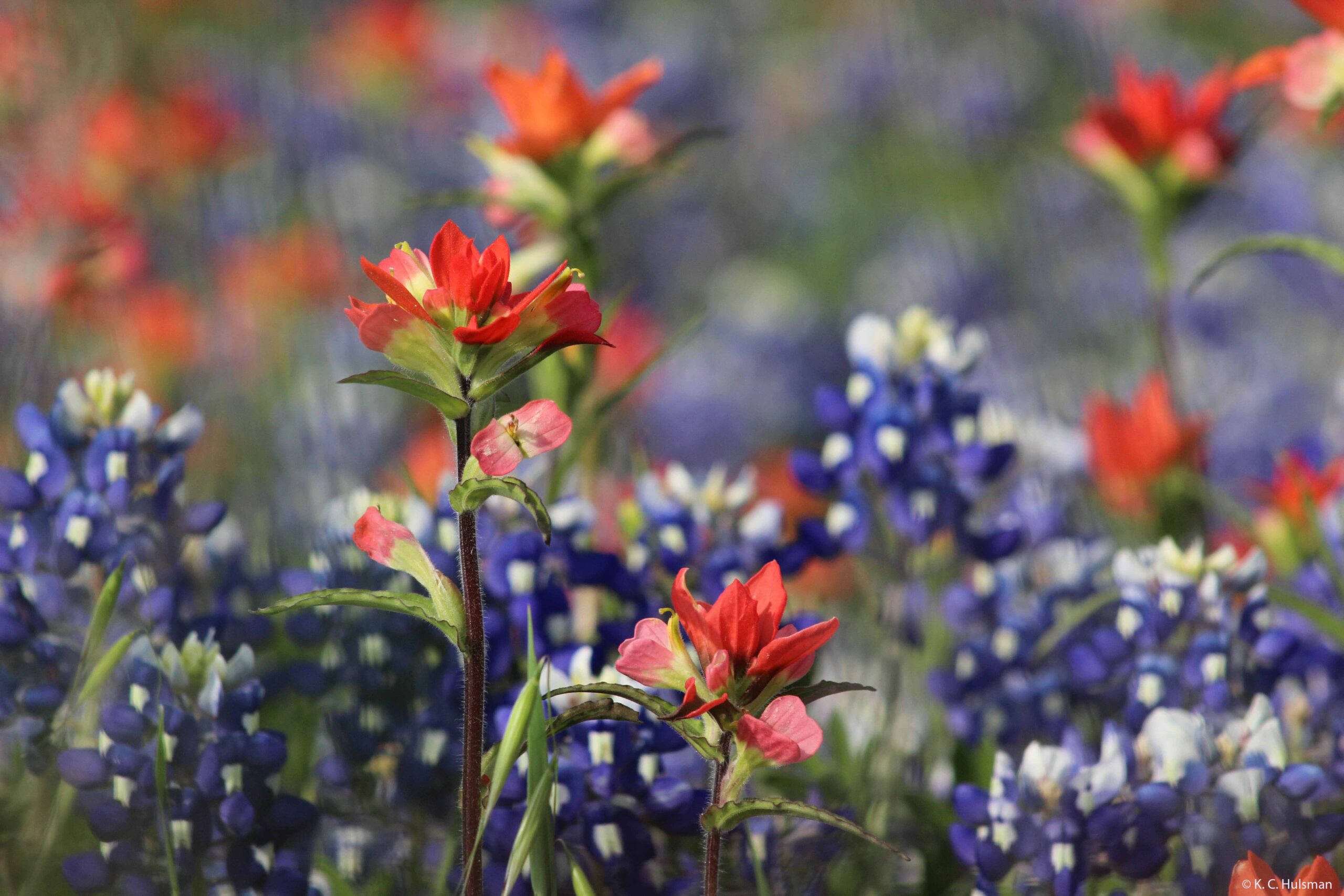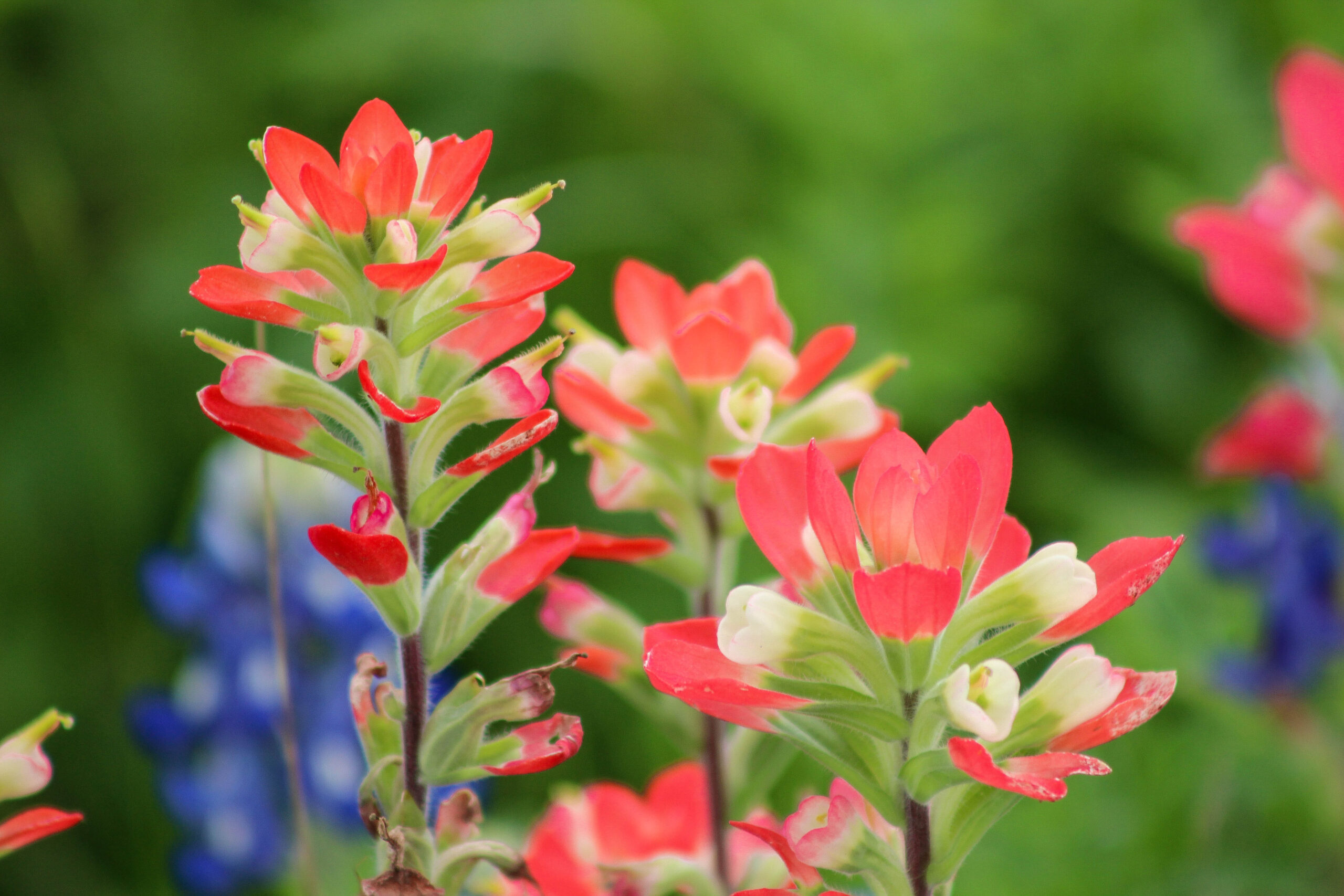 While Texas Bluebonnets are always crowd-pleasers, one of the other more populous Texas Wildflowers, would be the Indian Paintbrush, which possesses an orange to red hue with creme tips. Indian Paintbrushes in a normal year tend to start blooming as the Bluebonnets begin to peak and fade. They tend to reach similar heights to the bluebonnets, and can offer some great contrast which can really help to really bring out the blue hues in the Bluebonnet.