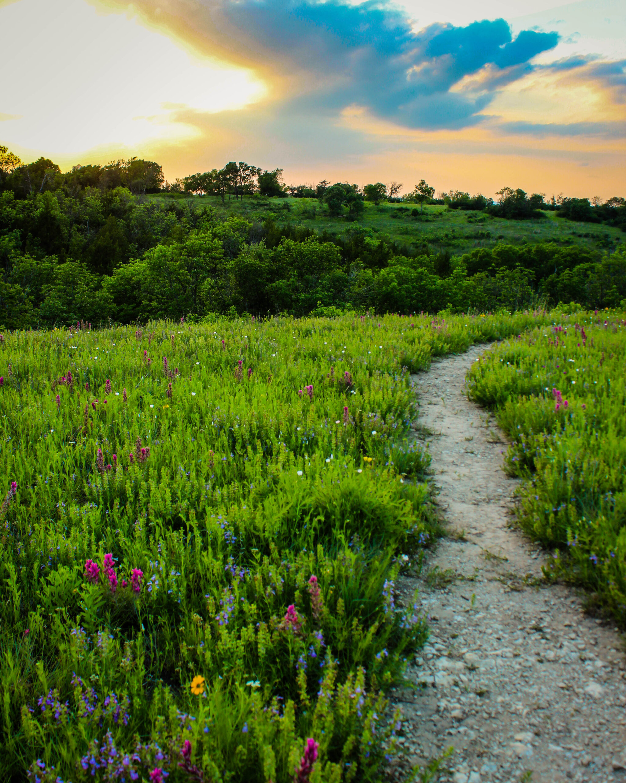 The image with the footpath, comes from Tandy Hills Natural Area in Fort Worth, Texas. Located just minutes from downtown, it preserverves over 160 acres of native prairie, and you can find some spectatcular sunsets here, especially during the blooming season. Milkweed in endless varieties is prevalent, and milkweed is the favorite food (as well as place to cocoon) for the Monarch Butterfly.