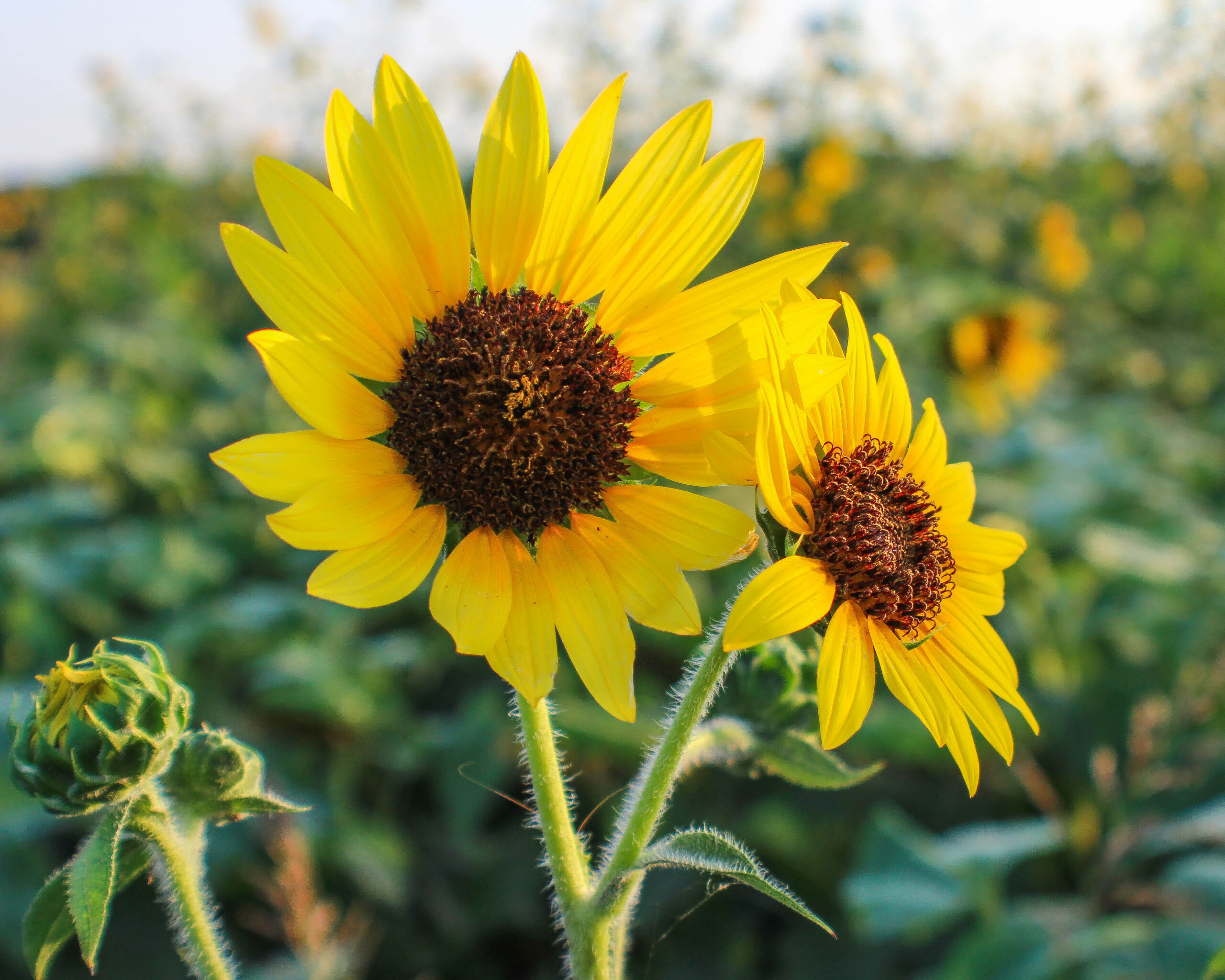 How can you tell the difference between wild sunflowers, and commercial ones? Easy: commercial ones have a flower that’s about the size of a human head, and wild ones are about the size of a human palm to hand.