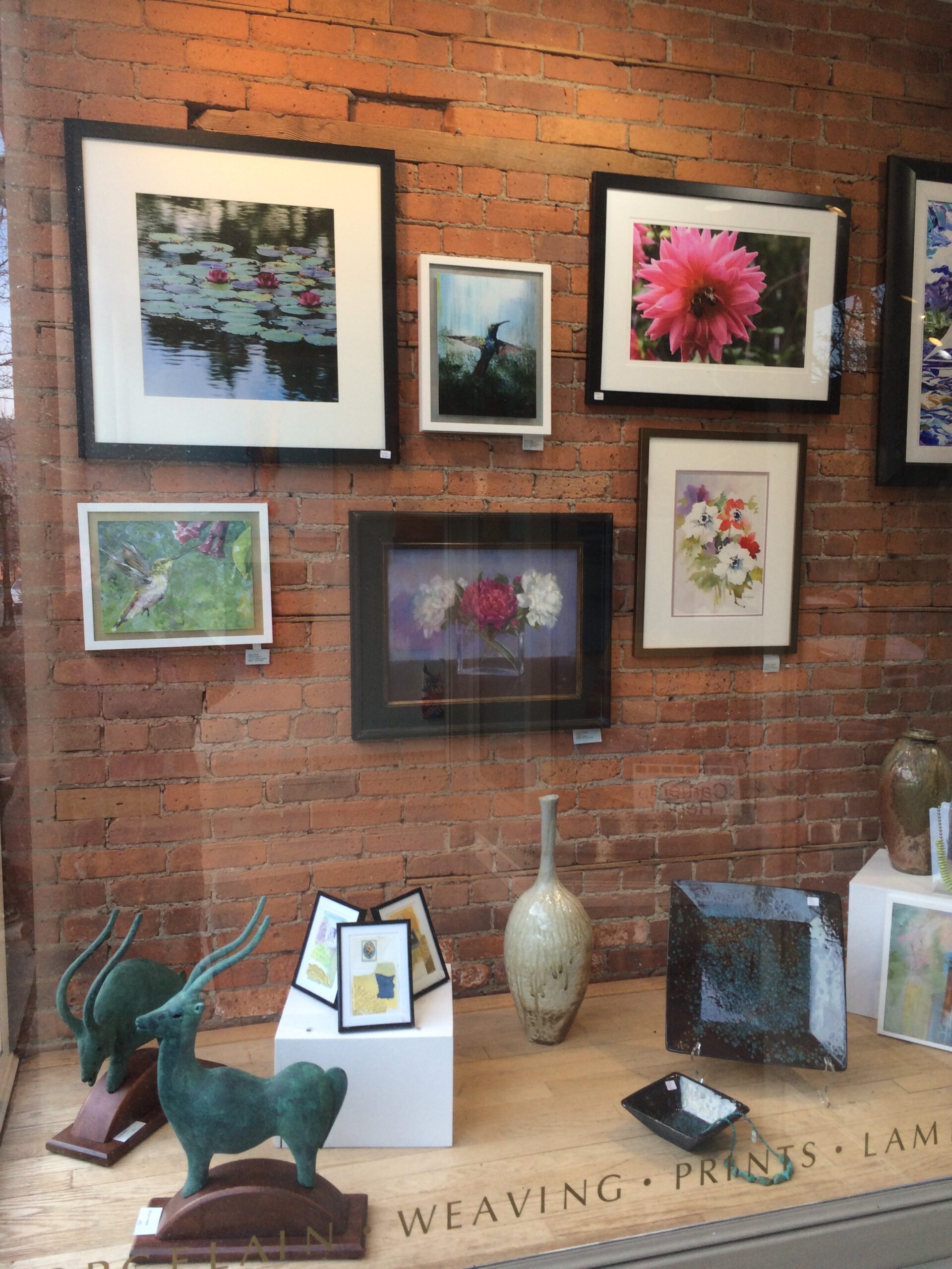 Two of my pieces (Monet’s Dream – a lovely photograph of some water lilies, and Keeping Beezy – two bees on a giant pink flower) have been moved upfront to the window display at RiverWinds Gallery at 172 Main Street in Beacon, New York.