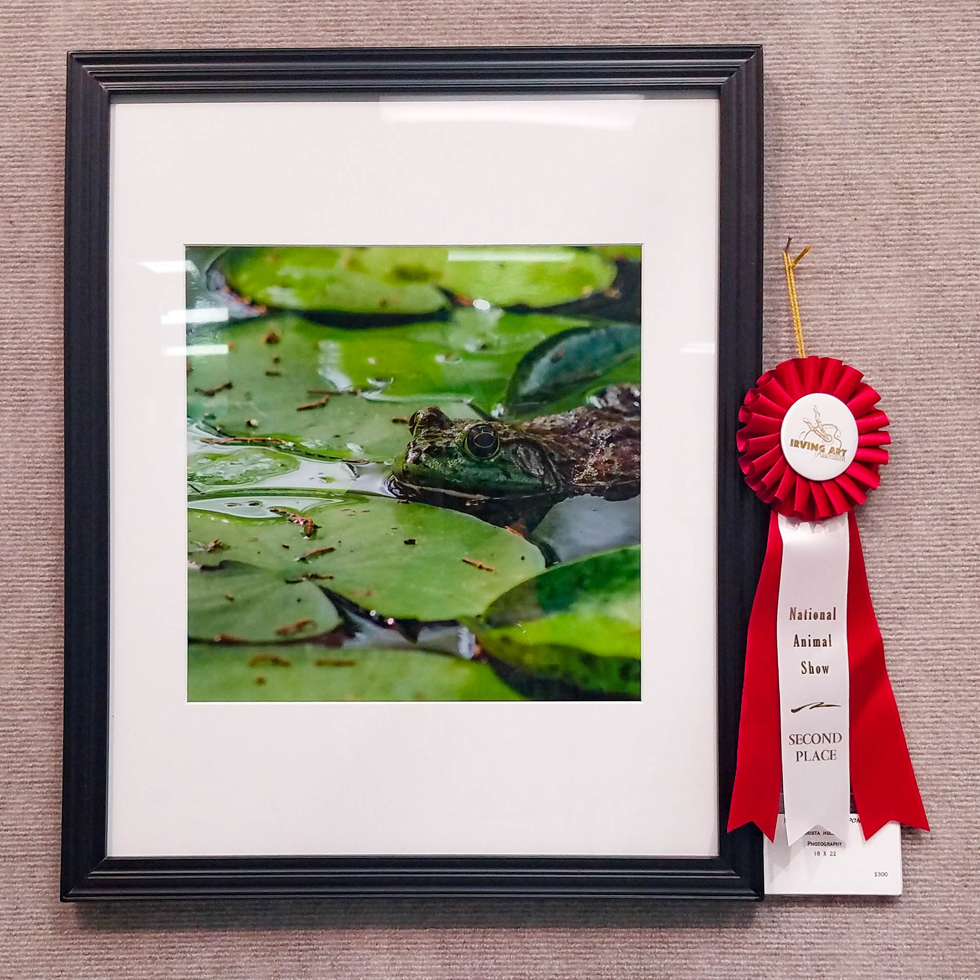 I’m elated to announce that my photographic work, “This Side of the Pond” was bestowed a Second Place award by a three-member judging panel for the 2018 IAA Animal Art Competition & Exhibition in the challenge category: Frogs & Toads, across all art mediums in the contest (digital art, drawing, mixed media, painting and photography).